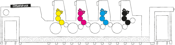 Wir produzieren Ihre Druckerzeugnisse auf modernen Offsetdruckmaschinen von manroland und Heidelberg.